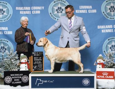 She has earned her Canadian Championship title as well as her AKC Championship title, she easily completed the AKC Canine Good Citizen class and earned that title along with a Trick Dpg title. She earned her AKC Junior Hunt Title as well as her Working Certificate. I don't think there is anything this girl can not accomplish.